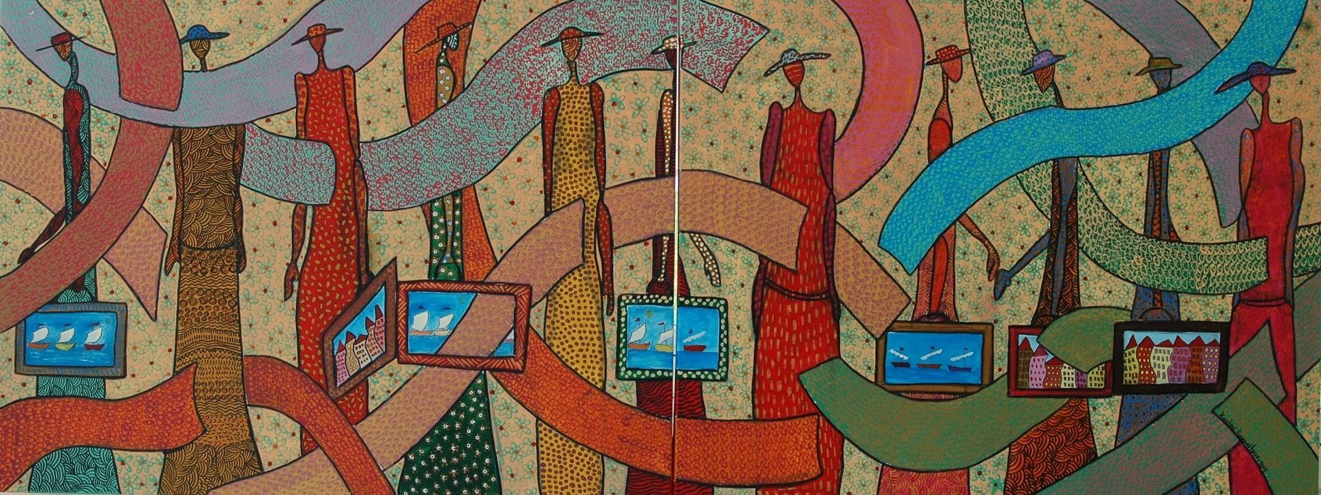 “Ταξιδιώτες”. 240x100cm. Ακρυλικά χρώματα.