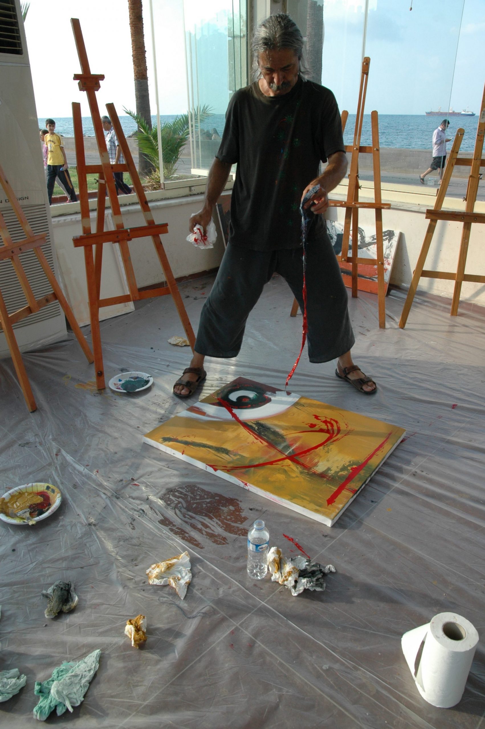Δύση σε λιμάνι. 180×120 cm. Ακρυλικά χρώματα.
